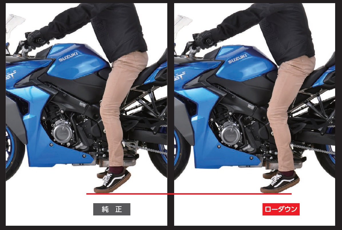 GSX-S1000GTの足つきを改善! EFFEXローダウンキット装着で劇的変化