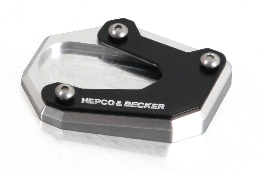舗装されていない場所での停車で必須アイテムと言えるのがエンラージメントです。このパーツを取り付けることでサイドスタンドの接地面積を拡張し、キャンプ地などで安心してバイクを停車できるように補助します。(すべての場所で使用できるわけではありません)