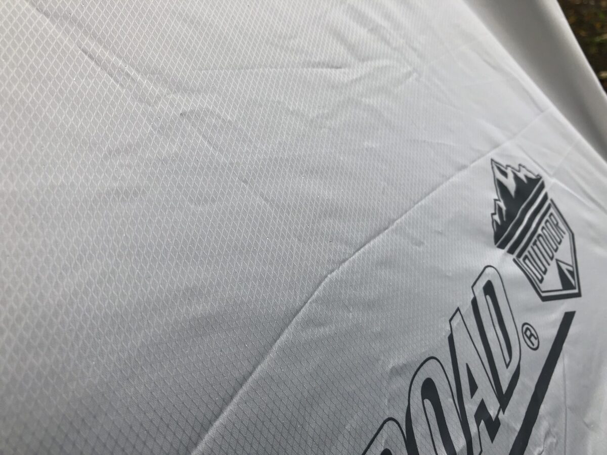 この部分、市場に出回っている多くのテントでは、耐水圧1500~2500mmというものが多いのですが、このラフツーリングテントは耐水圧4000mmを確保。ザックリいうと「雨に強くてなおかつ涼しい快適テント」なわけです♪