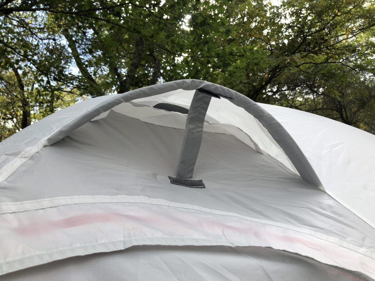 110cmの高さの天井にはランタン用ループのほか、4隅にマルチループがあるためネットやロープをかけてタオルをかけておく、なんてこともできます。