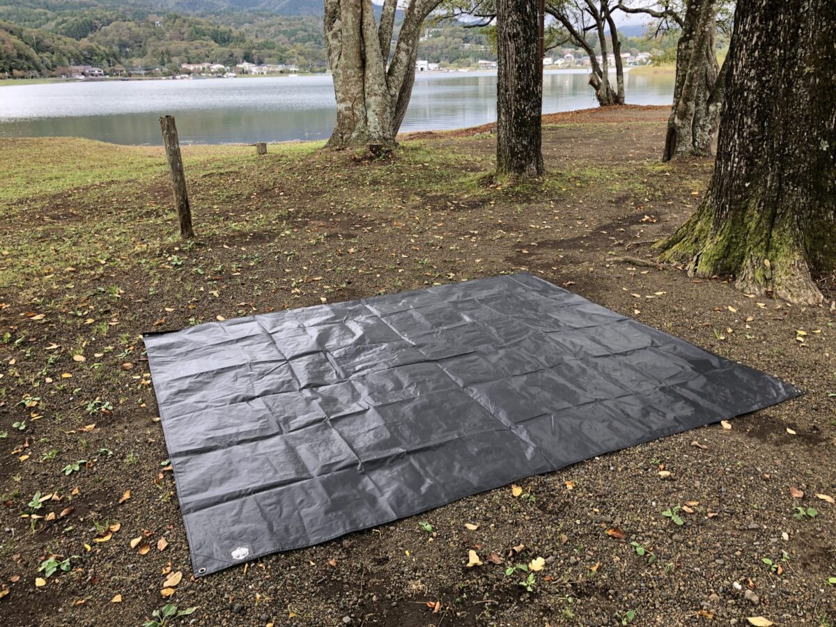サイトに着いたら設営場所を決めグランドシートを広げます。テントの中から見える風景を考えながら設営しましょう。