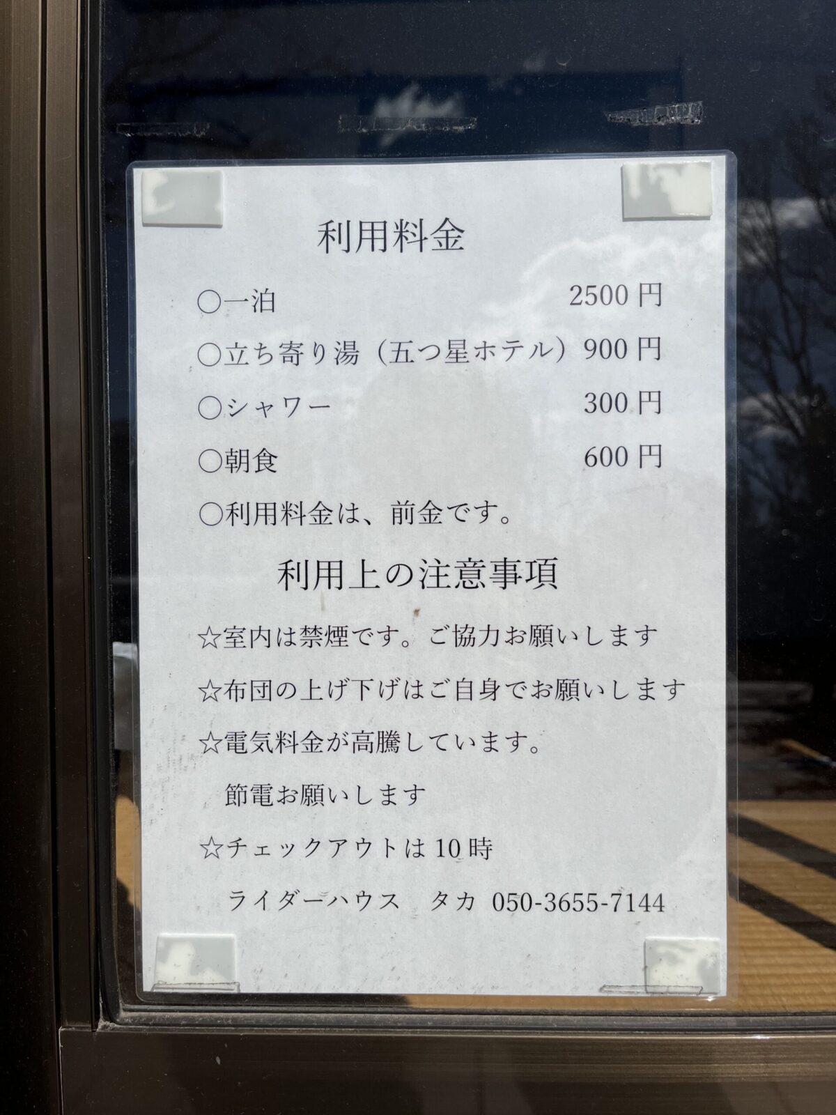 ※2025年7月17日現在、ライダーハウスタカさんの連絡先変更ありました。⇒ 050-1468-6365