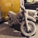 ヨコハマでは年に一度あるかないかですが、たまに雪が降り、ちょっとでも積もると坂道が多いのであちこちでスリップによる事故が発生します。越年宗谷岬隊の達人の皆さんのバイクは、スパイク仕様だから雪道を走れるのであって良い子のみなさんは絶対に無理をしないでくださいね(笑)