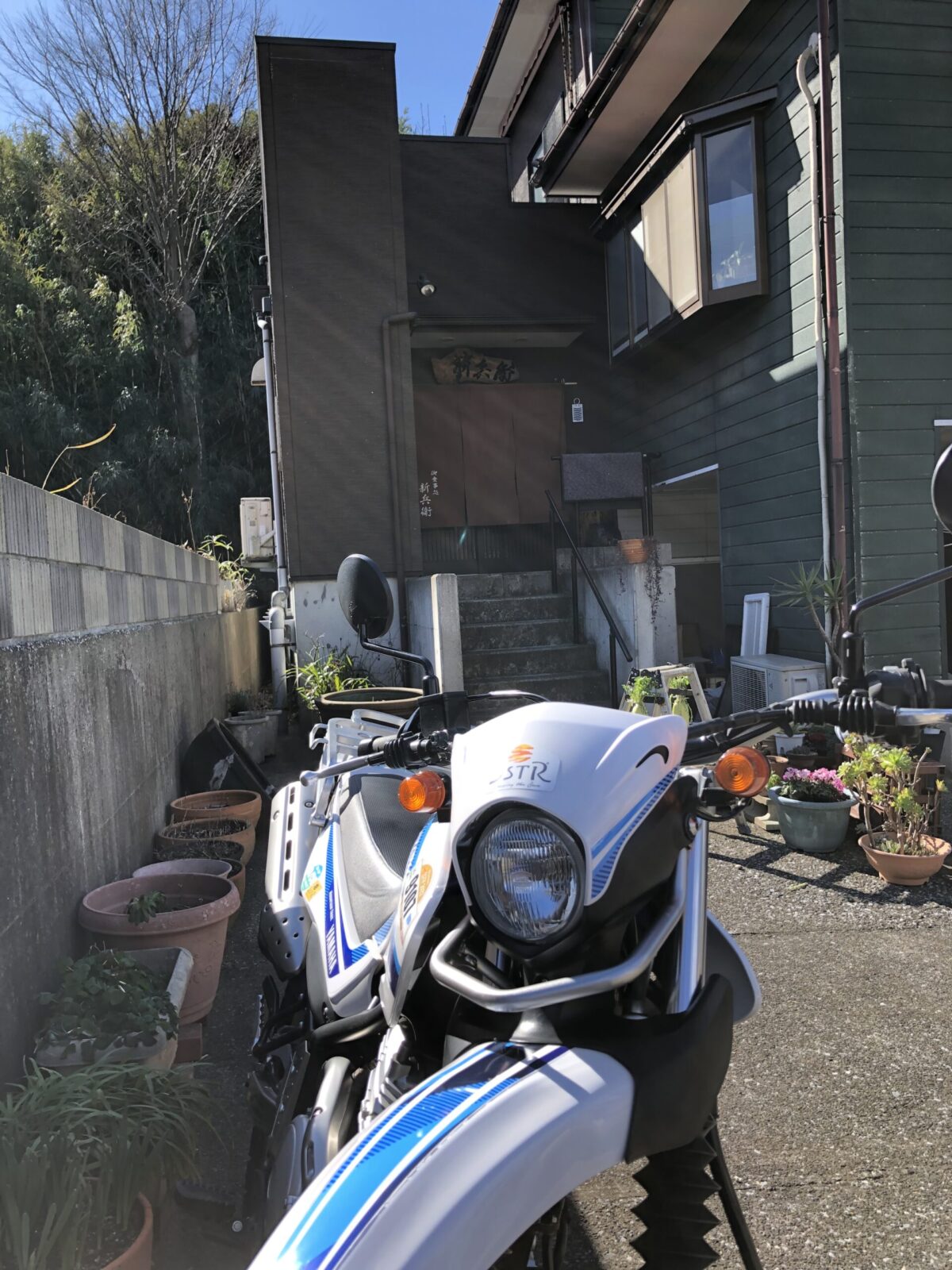そのお店は長井漁港からソレイユの丘に抜ける途中のバイクならギリOKってくらいの細い脇道をちょろちょろ入って辿り着く先にある「新兵衛」というお店。