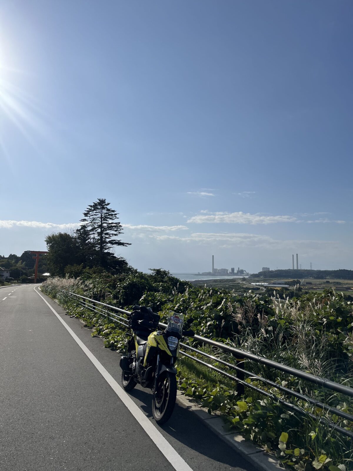 その日は高萩あたりまで海沿いに6号を進み、常磐道が近づいたら高速で一気に埼玉の三郷まで移動予定。昼までに合流地点に行く予定でした。が、快晴だった6号もスポットゲリラ豪雨で土砂降りになるなど、レインスーツを脱いだり着たり。