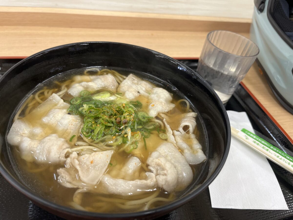 午後3時ごろ、やっと紫波SAでお昼。だいぶ涼しくなってきたので温かい肉そば、いただきます。