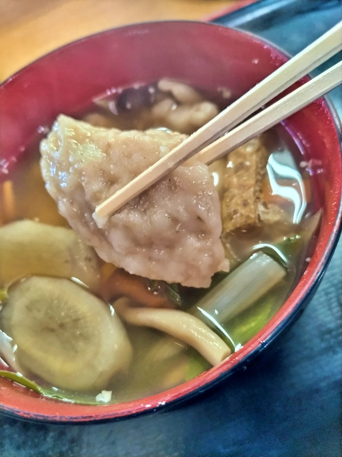 そば粉のすいとんが入った「そばすいとん」の定食は800円。野菜や根菜もたっぷり