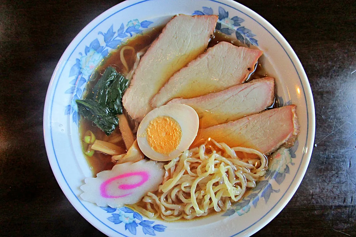 「白河ラーメン」といえば「喜多方ラーメン」、「郡山ブラック」と並ぶ福島県の三大ラーメン。手もみの中太麺と濃い目の醤油ベースのスープが特徴。写真は南湖近くの「秀佳亭」のものだが、白河市内には何軒もの店がある