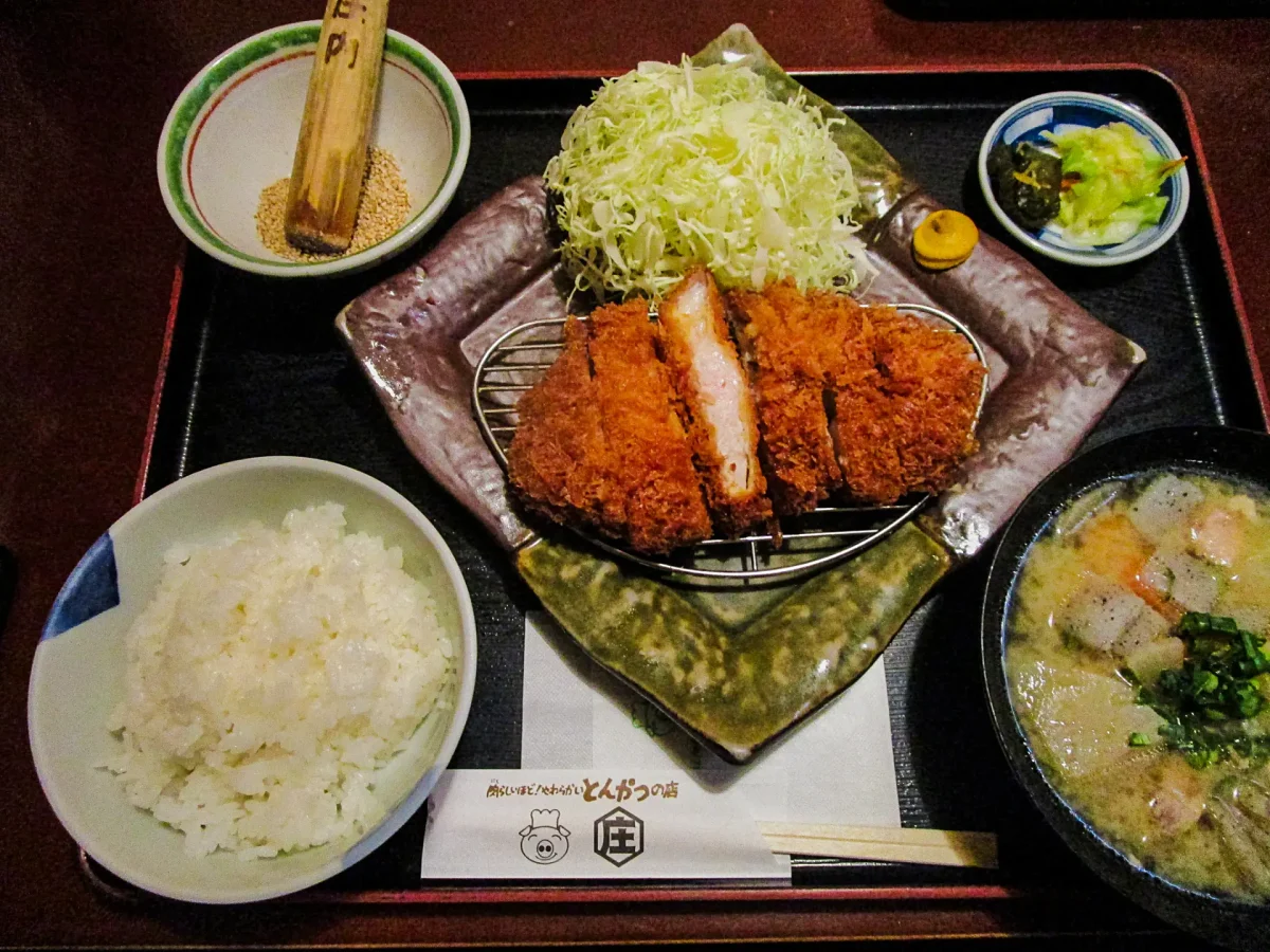 古川の「とんかつ庄内」(ツーリングマップル東北 P.40 K-2)の「ひれかつ定食」と「とん汁」