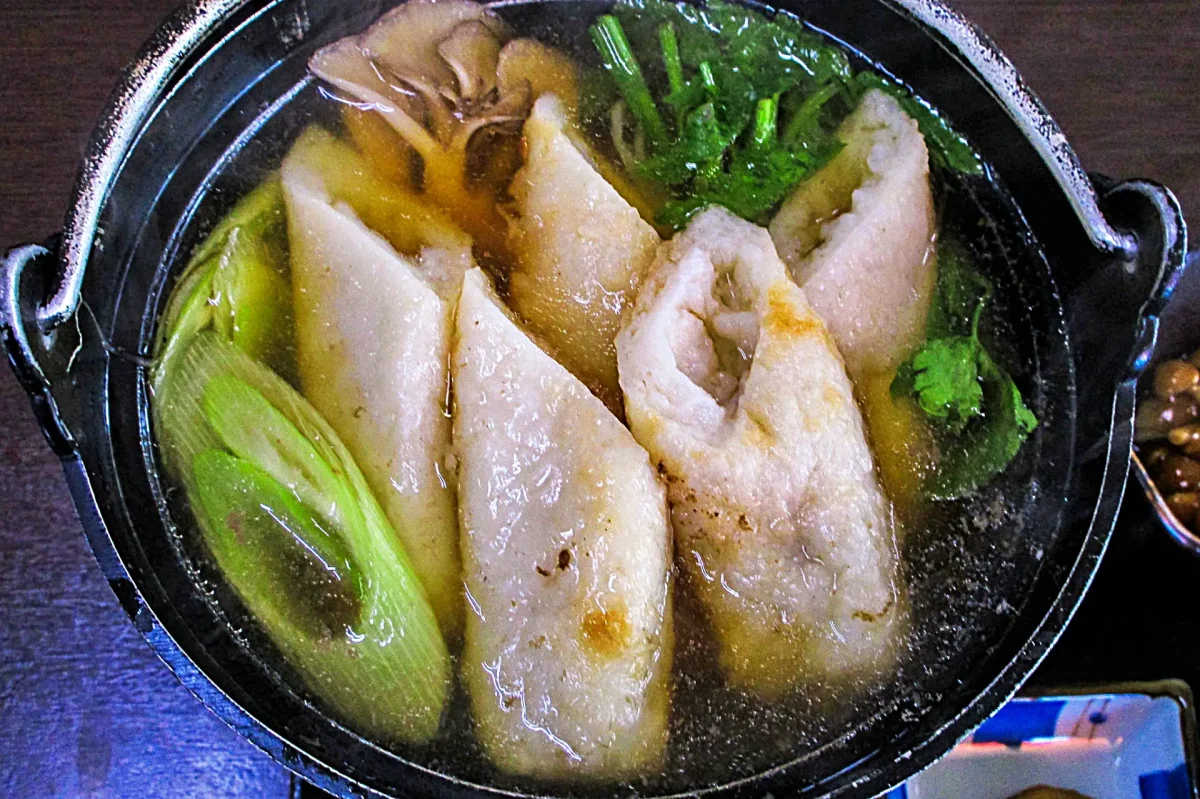 「きりたんぽ鍋」は秋田県の郷土料理の中では知名度ナンバーワン。温泉宿に泊まると、夕餉の膳には、よく「きりたんぽ鍋」が出るし、道の駅や食堂・レストランで食べられる。「きりたんぽ」は硬めに炊いた粳米の飯をすりこぎで粘りがでるまでつき、秋田杉の丸串に巻きつけ、それをこんがりと焼きあげたもの。もともとは熊猟をするマタギたちの携行食だった。そのきりたんぽと、鶏肉、山菜、野菜類、糸こんにゃくなどを入れた鍋料理がきりたんぽ鍋だ