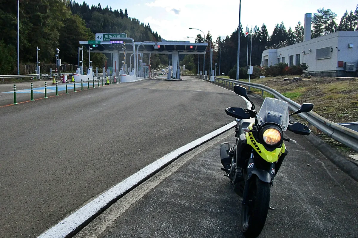 秋田県に入ると「発荷峠(はっかとうげ)」(ツーリングマップル東北 P.84 H-1)を越える。峠の展望台からの眺めは最高。国道104号との合流地点を過ぎたところには「止滝(とまりたき)」(ツーリングマップル東北 P.84 I-2)があるが、ここの紅葉は見事だ。そして、大湯温泉を過ぎると、東北道の十和田ICに到着だ。