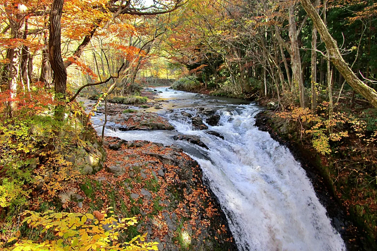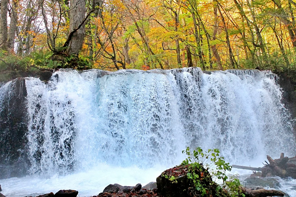 奥入瀬渓流最大の銚子大滝。紅葉がひときわ映える