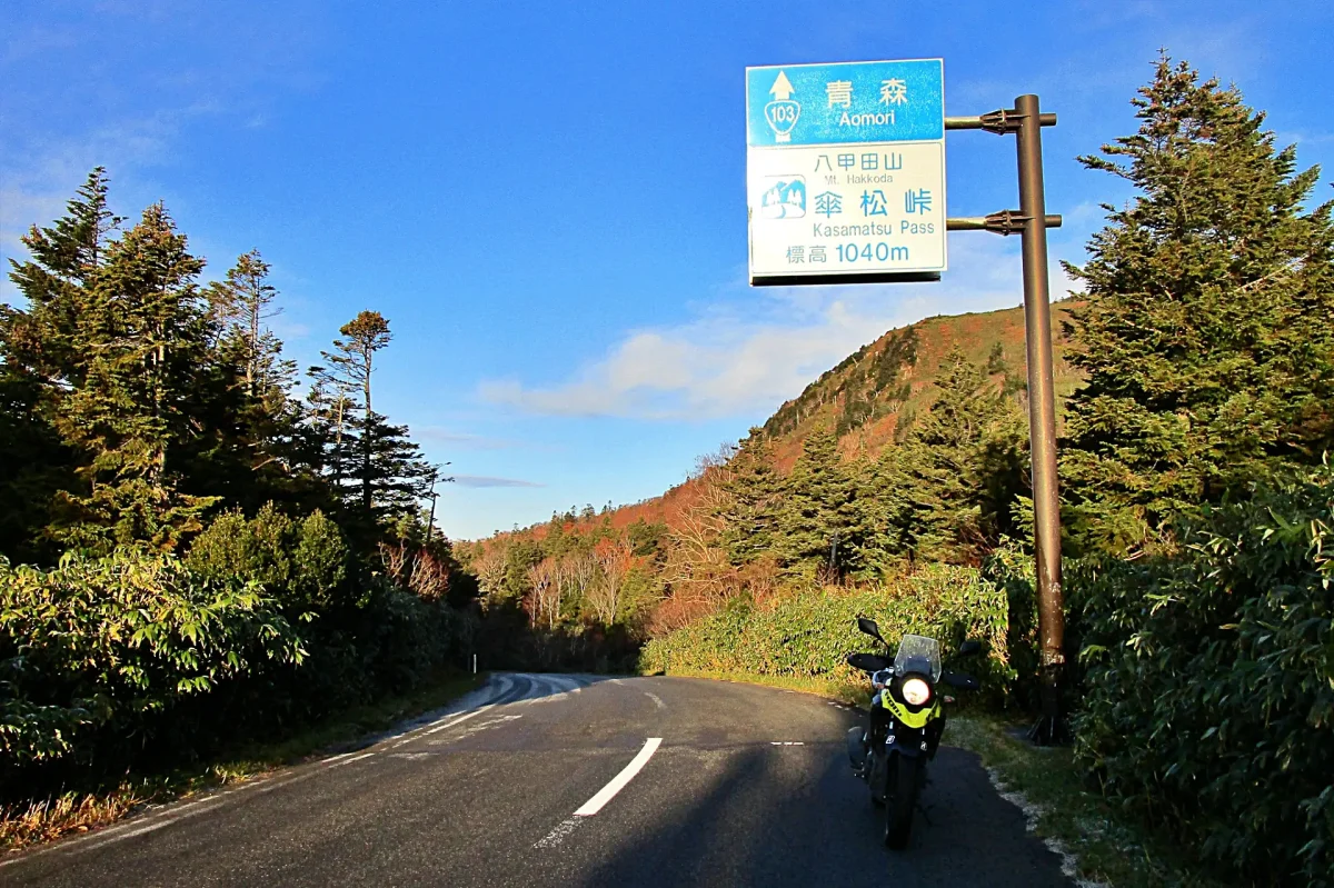 国道103号の傘松峠。北八甲田と南八甲田を分ける峠