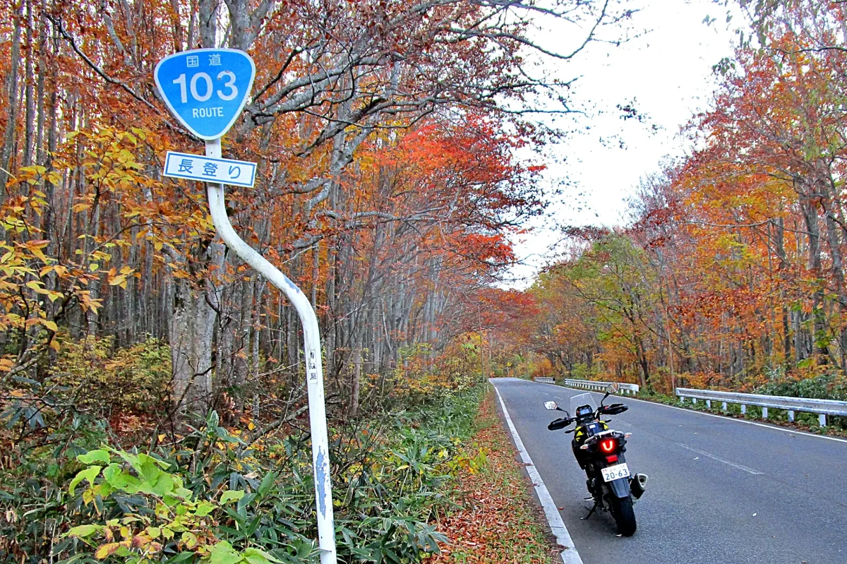 紅葉の国道103号を行く