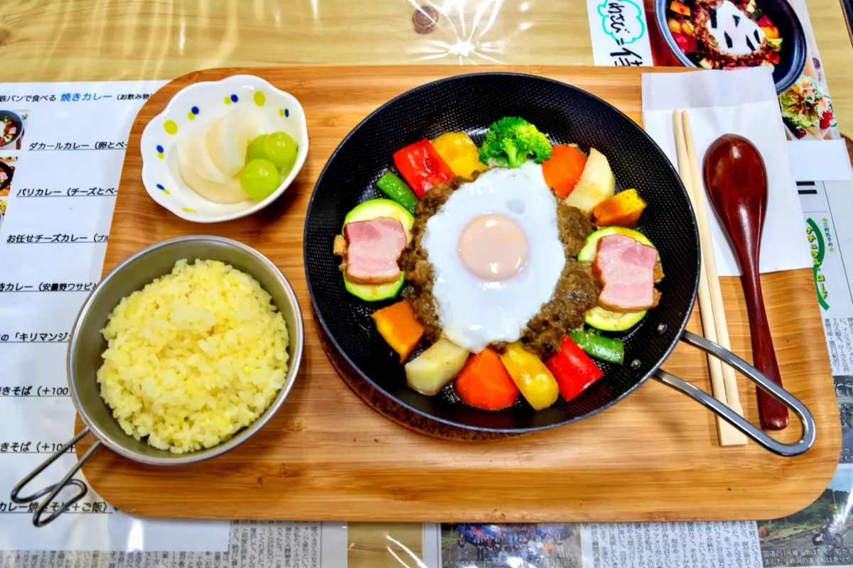 途中、これも馴染みのカフェラビットで休憩して、今回は、業界の先輩である三好レイコ姉御の「ペレファカフェ」(ツーリングマップル中部北陸 P.80<関東甲信越 P.52>G-2)で看板メニューの「ダカールカレー」をいただいた。