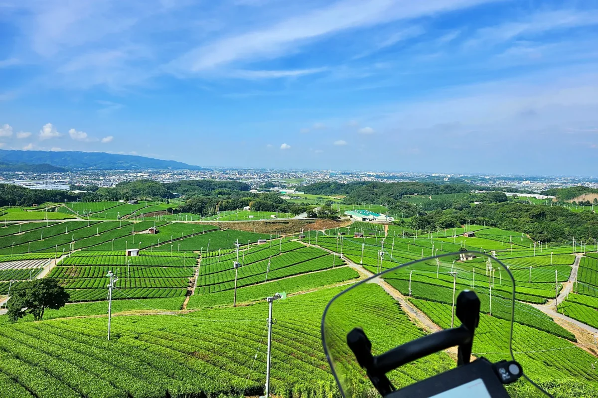 旅館の方から教えてもらった「八女中央大茶園展望所」。 一面の茶畑!これまた絶景