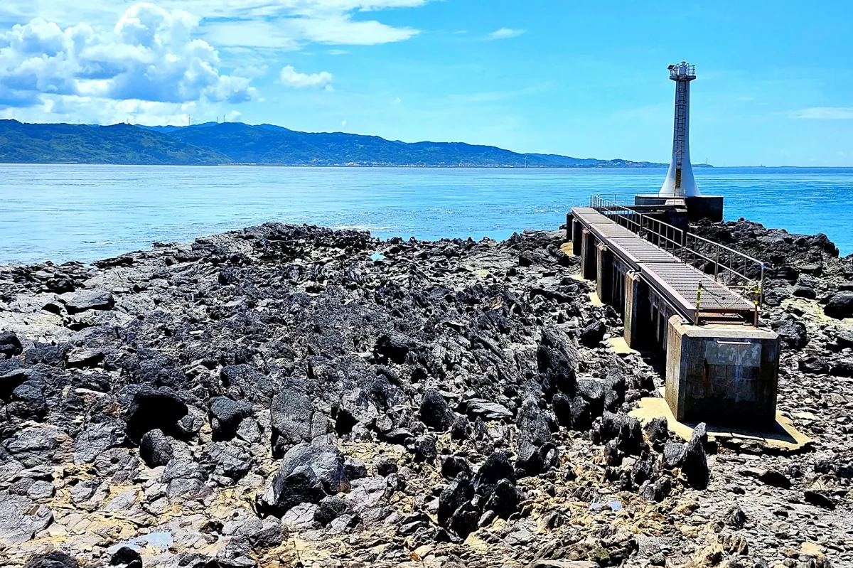 灯台周辺は溶岩のような黒いものがゴロゴロ。これは島原半島の中で最も古い岩石の一つである早崎玄武岩。約430万年前に噴出したと推定されている