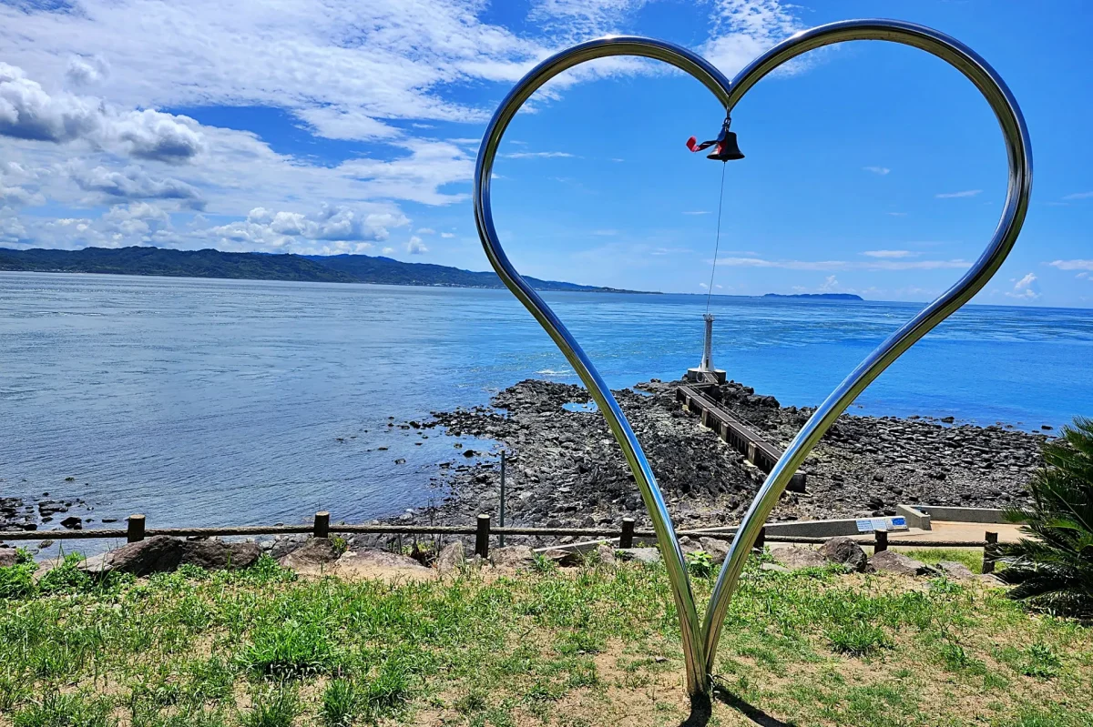 瀬詰崎にある「幸せの鐘」。夕日や星空の鑑賞スポットだそう