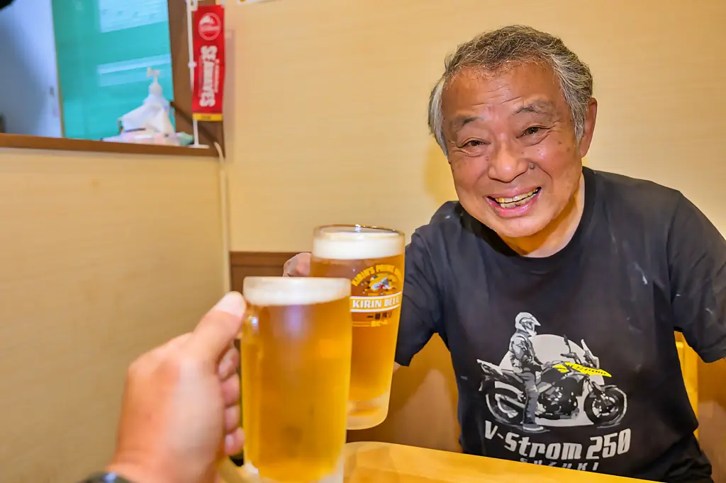 巣山カメラマンとまずは生ビールで乾杯!