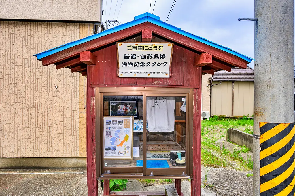 国道7号旧道の新潟・山形県境には県境通過の記念スタンプが置かれている