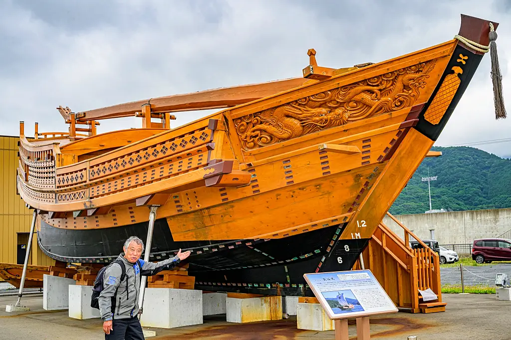 「バイクの駅」に隣り合って復元された千石船の「気仙丸」が展示されている
