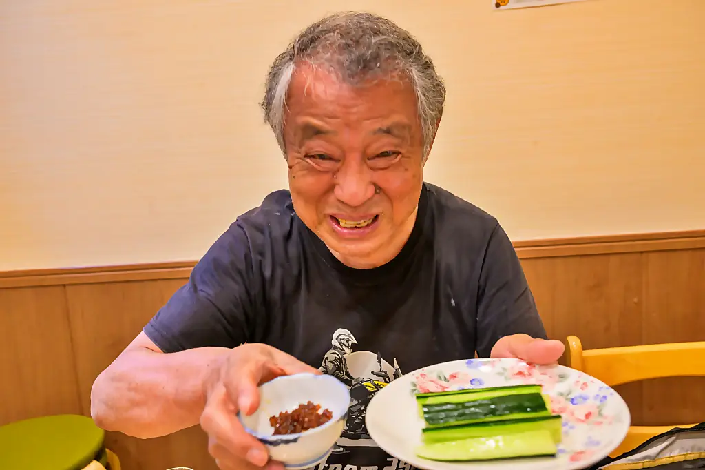 生のキューリをもろみにつけて食べる。最高の酒の肴!