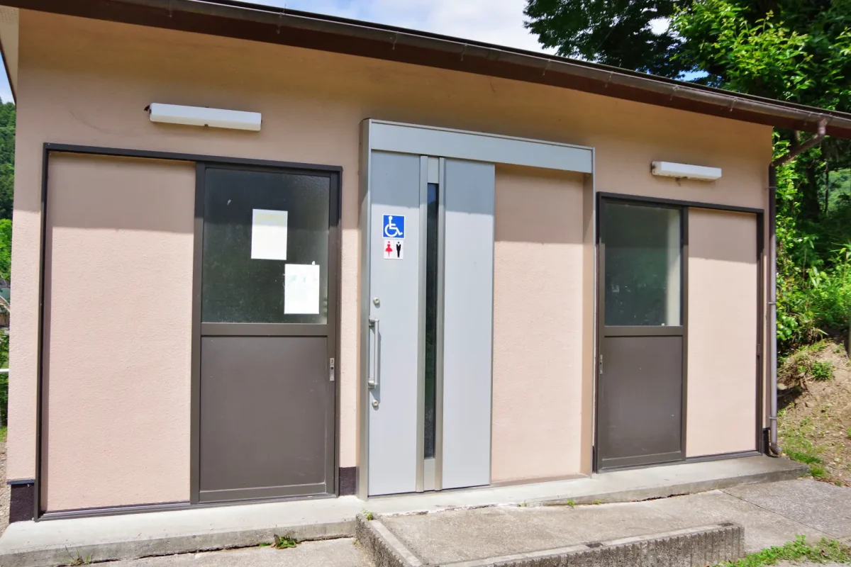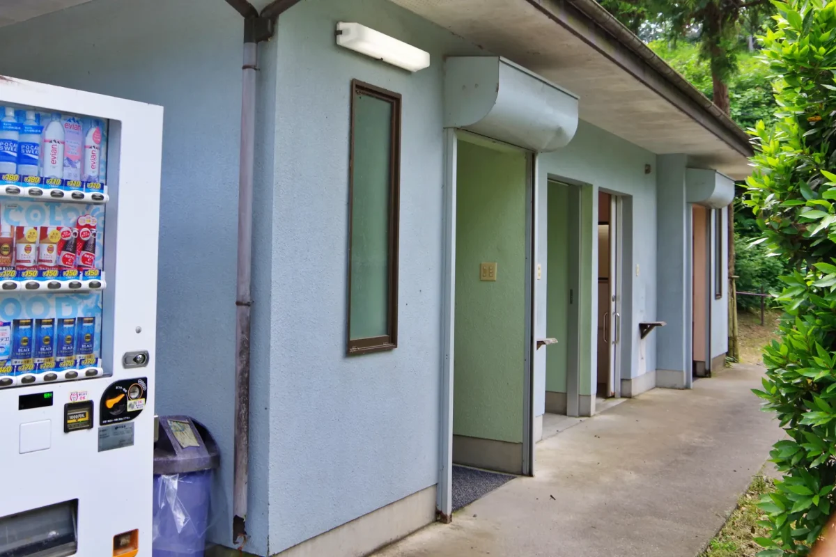トイレはキャンプエリアに3カ所、管理棟側のバンガローエリアに2カ所あり、すべて男女別水洗トイレで、個室は温水洗浄便座。ムーンサイト側のトイレは入口にドアが付いているが、そのほかのトイレは入口ドアがないので、夏は虫が気になるかもしれない。