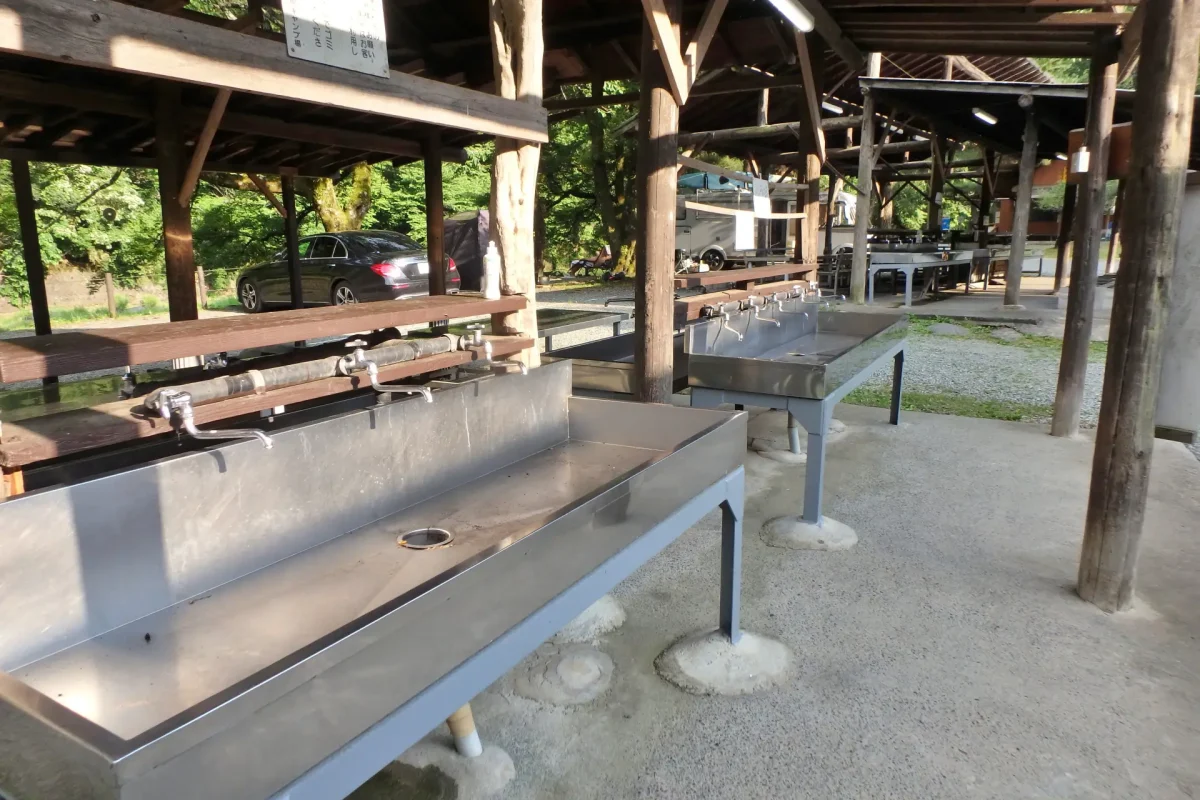 グリーンサイト側にある炊事場。一部給湯器付きで、場内で一番蛇口数が多い