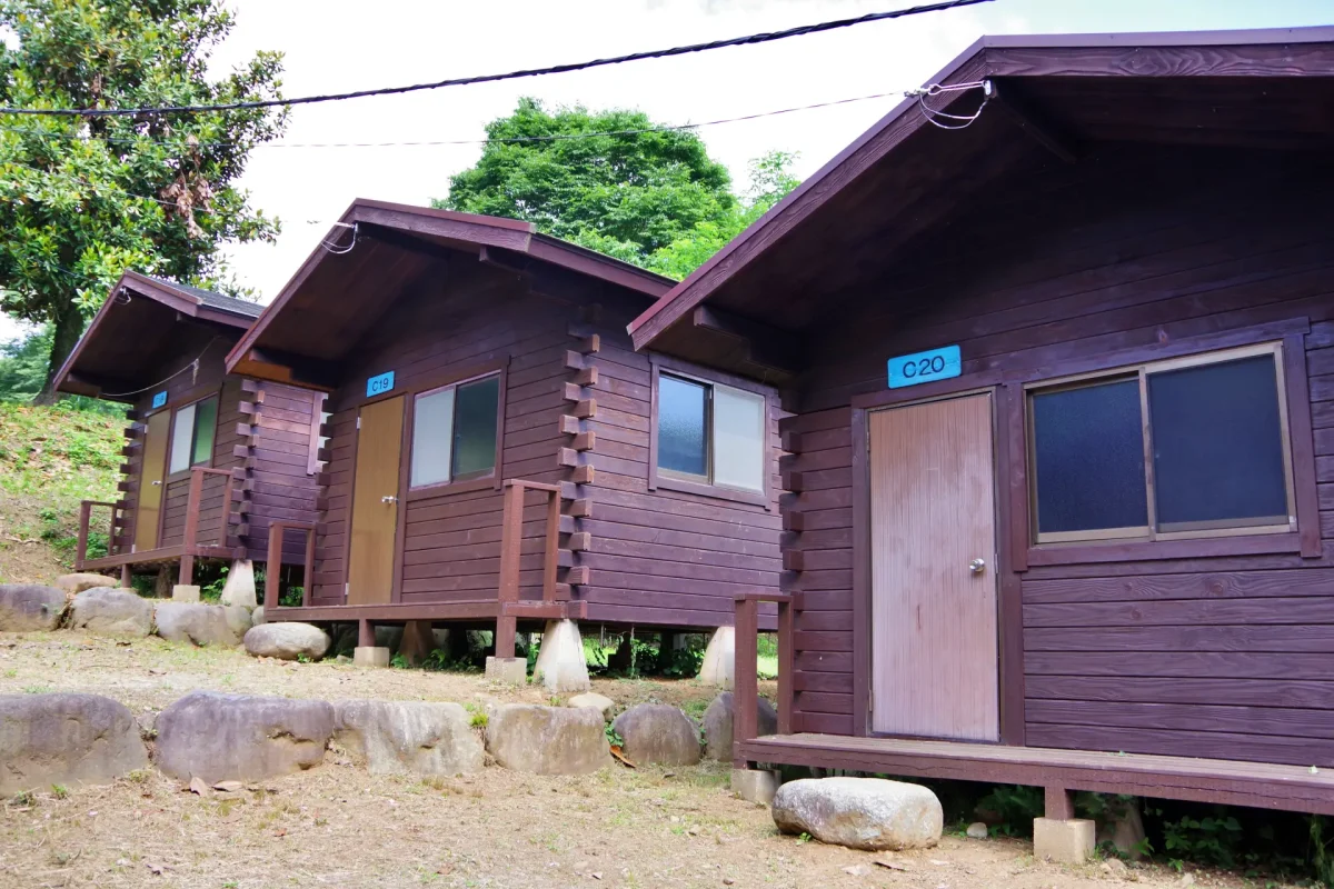 キャンプエリアにある6畳、エアコン付きのCタイプ