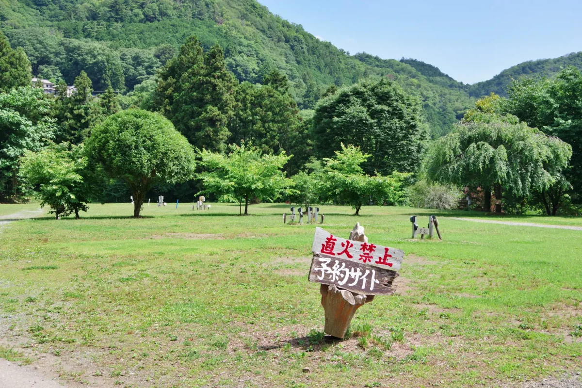 道志川沿いにあり、温泉施設が隣接している唯一のキャンプ場がここ。チェックインは8時からでAC電源付き以外のサイトは予約不要。夏は川遊びやデイキャンプでも賑わうため、早朝からチェックイン待ちの行列ができるほど人気だ。チェックアウトは10:00なので、のんびり撤収するなら受付時にデイキャンプも申し込んでおこう。