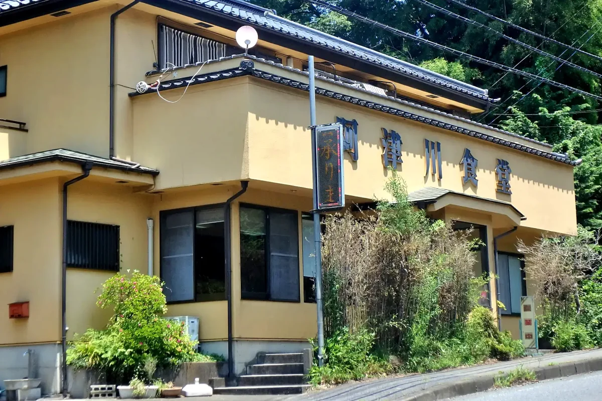 ランチはボリュームがあると評判の阿津川食堂へ。開店時間早々に入店すると、気持ちいい挨拶で迎えてくれた。暑さで喉が渇いていたので出されたコップの水を一気に飲んだら、「この暑さで水分補給しないと危ないからね」と言って、すぐにお替りの水を注いでくれたのが地味にうれしかった。