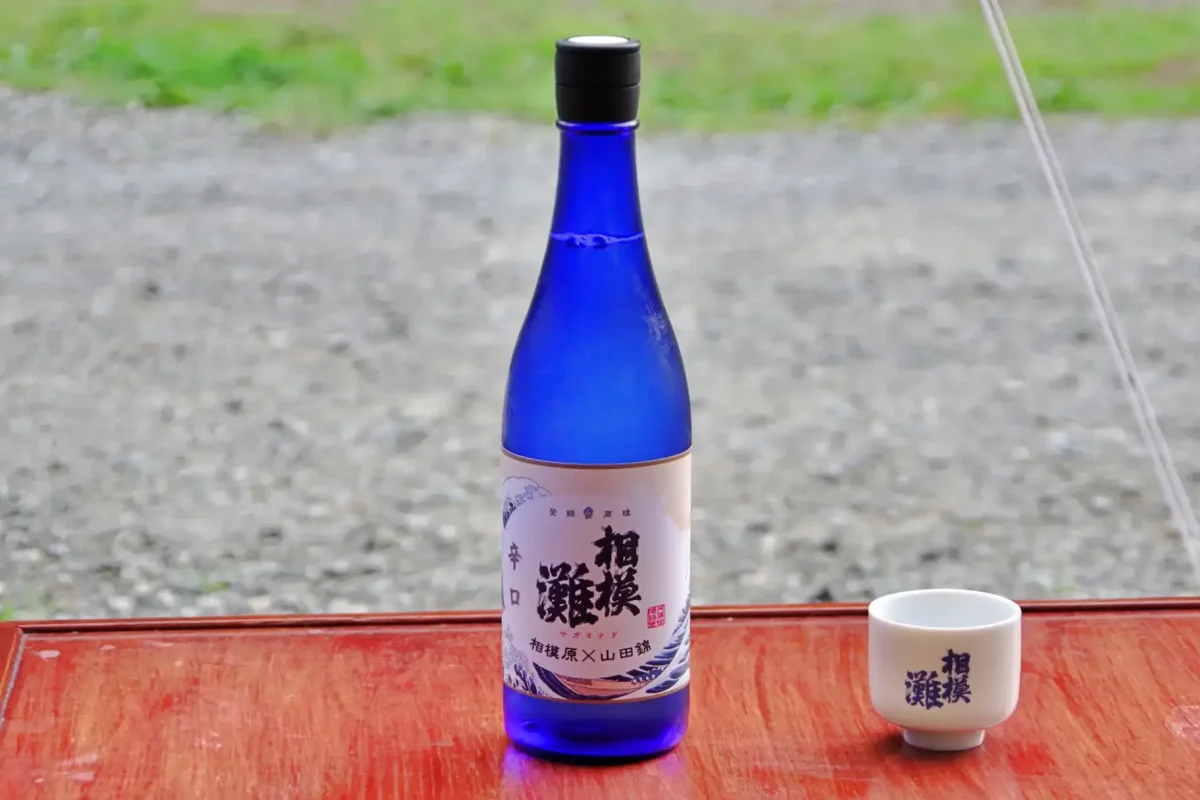 今回のキャンプ酒、相模灘 相模原×山田錦 辛口。アルコール度16度、精米歩合65%、日本酒度+7の芳醇な辛口となっている