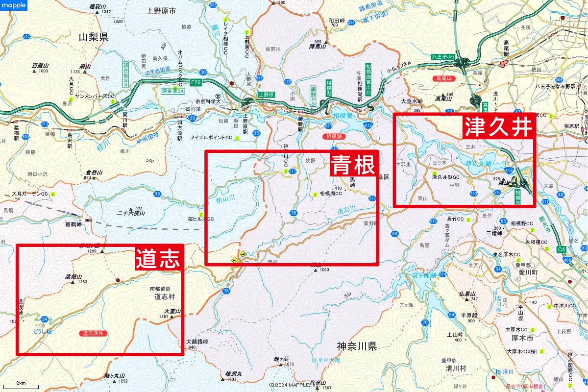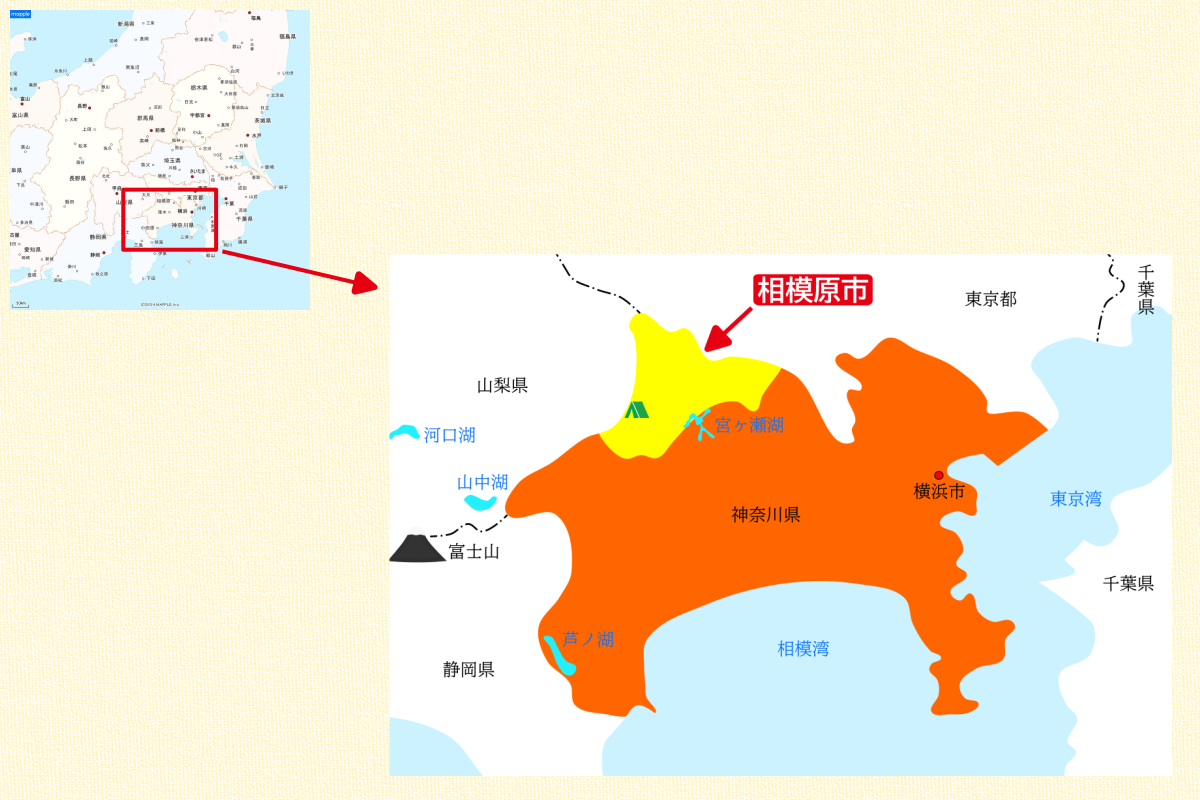 キャンプ場がある相模原市は、神奈川県北部。東京都、山梨県との県境に位置している