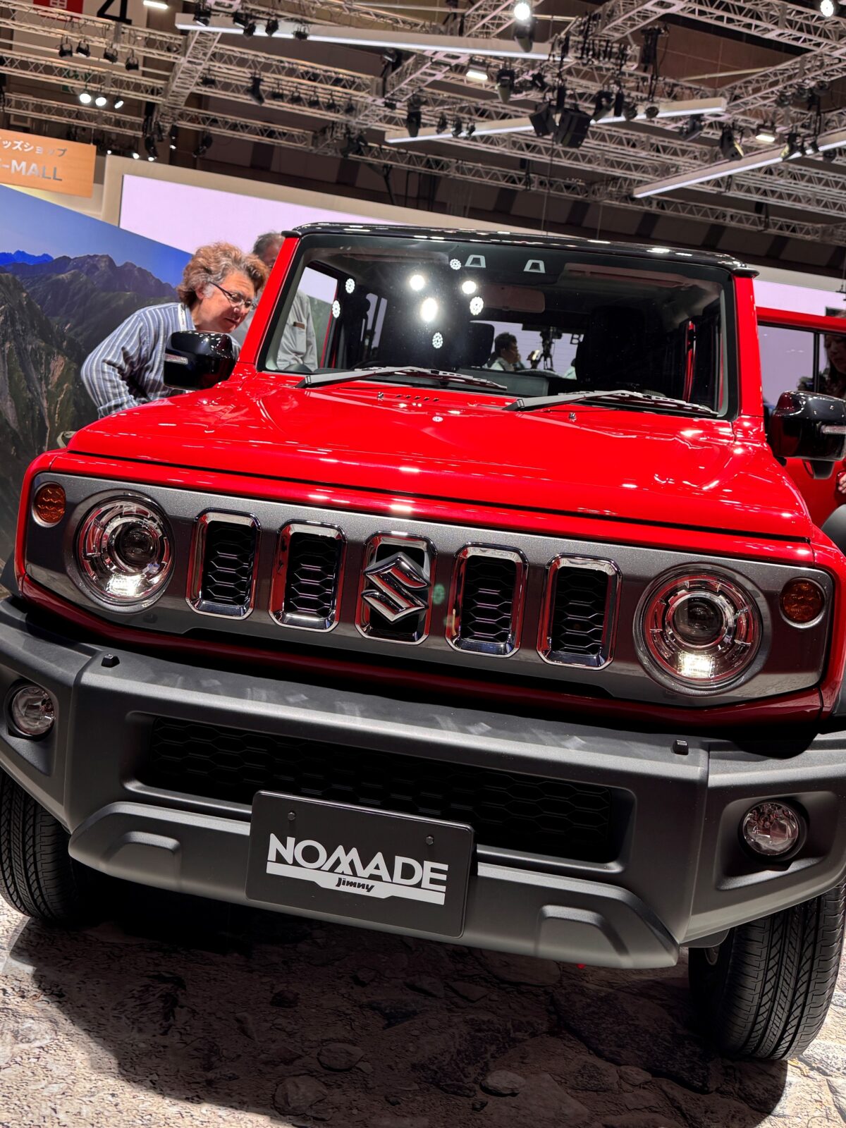 四輪も見ました。まずは2025年1月に発表されて即、5万台(月間販売目標1200台)の受注を受け、なんと発表わずか4日後に受注が停止されたというジムニーノマド。実際目の当たりにするとほしくなりました。4輪買うならこれがいいな…。