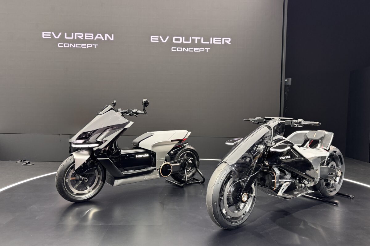 HONDAのEV二輪コンセプト。やっぱりモーターショーいや、モビリティショーって言ったらこういうのが見たいですよね! 従来のスクーターっぽいURBANとクルーザータイプのOUTLIER。OUTLIERは初公開。カッコいい。いかにも「燃料電池積んでます!」っていう見た目が気になっていた過去の電動バイクモデルとは一線を画しているように見えますね。
