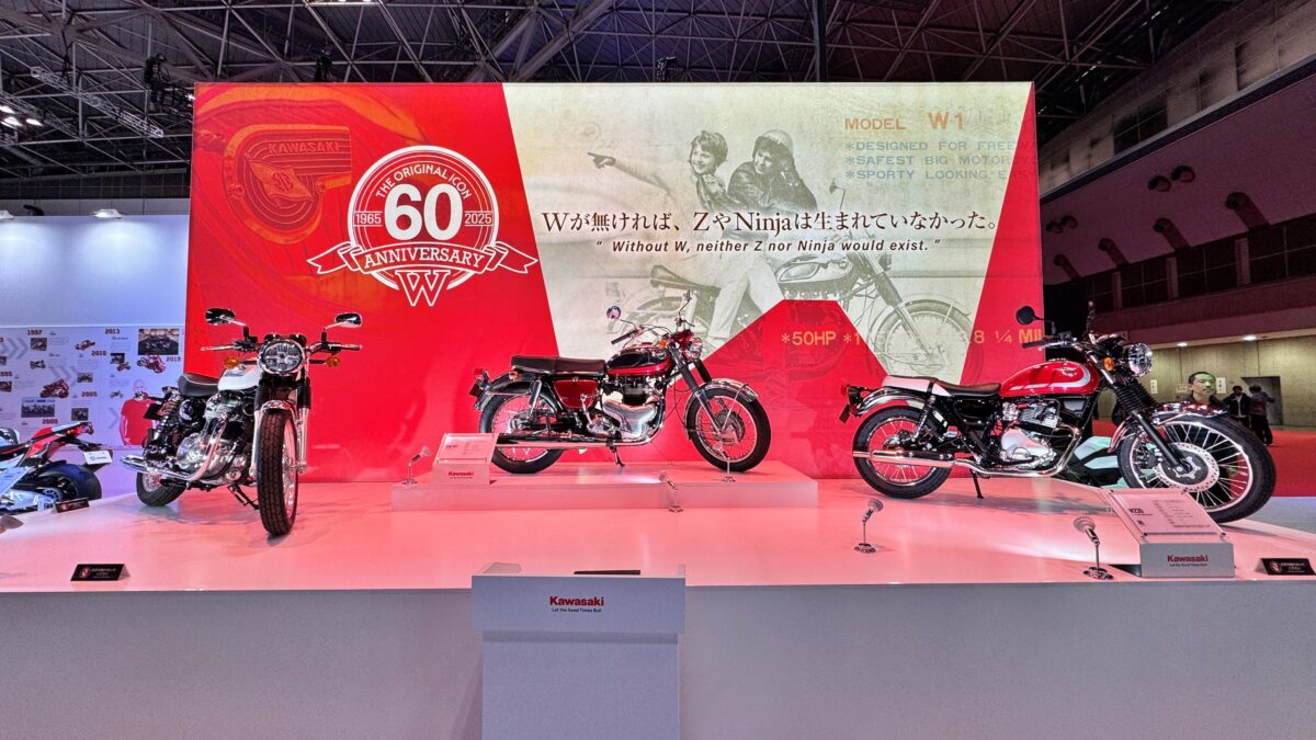 カワサキブースに戻って、「W」シリーズが60周年ということで、W230、650-W1、W800がかっこよく並んでおりました。