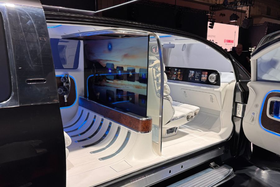 2026年から発売予定という、メルセデス・ベンツのラグジュアリーなバン「Mercedes-Benz Vision V(ビジョンV)」も展示。注目されていました。何すかねこの後部シートの大画面は。中に入るとシアタールームかラウンジかって感じの空間で、車に乗ってる感もないです。住める。