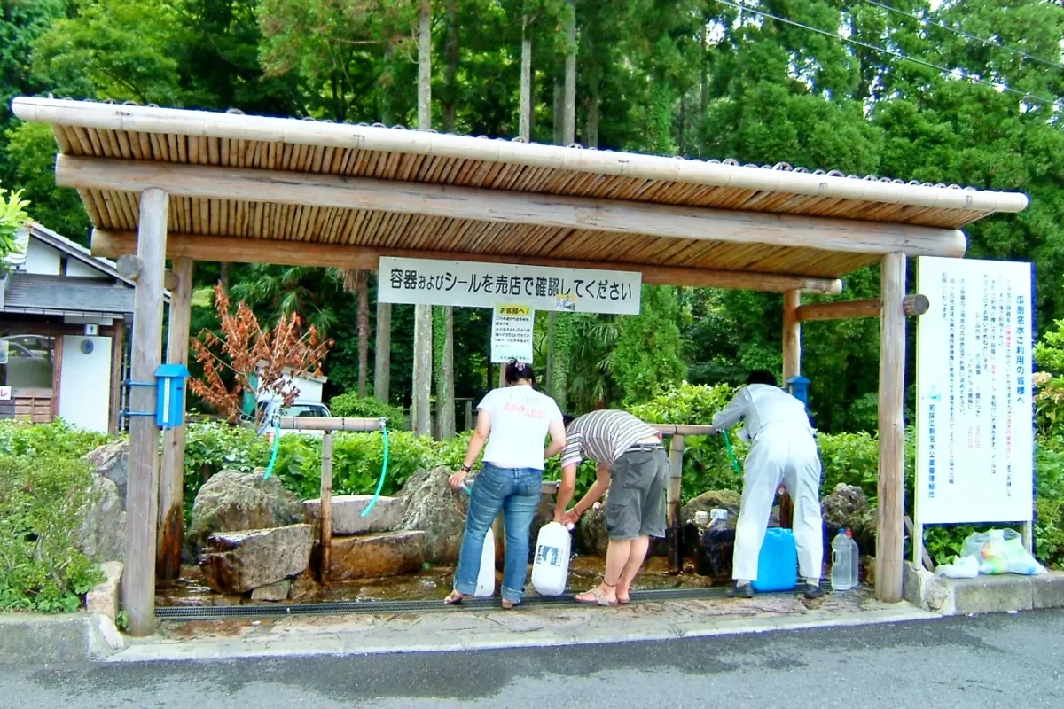 酒どころとして有名な、京都・伏見の「御香宮(ごこうのみや)神社」境内にある湧水。平安時代、境内より湧き出した香りのよい水を飲んだところ、たちまち病気が治ったので、清和天皇から「御香宮」の名を賜ったとされる。甘みのある軟水で喉越しの良さが特徴。伏見七名水のひとつで名水百選。境内入域自由、持ち帰り無料。