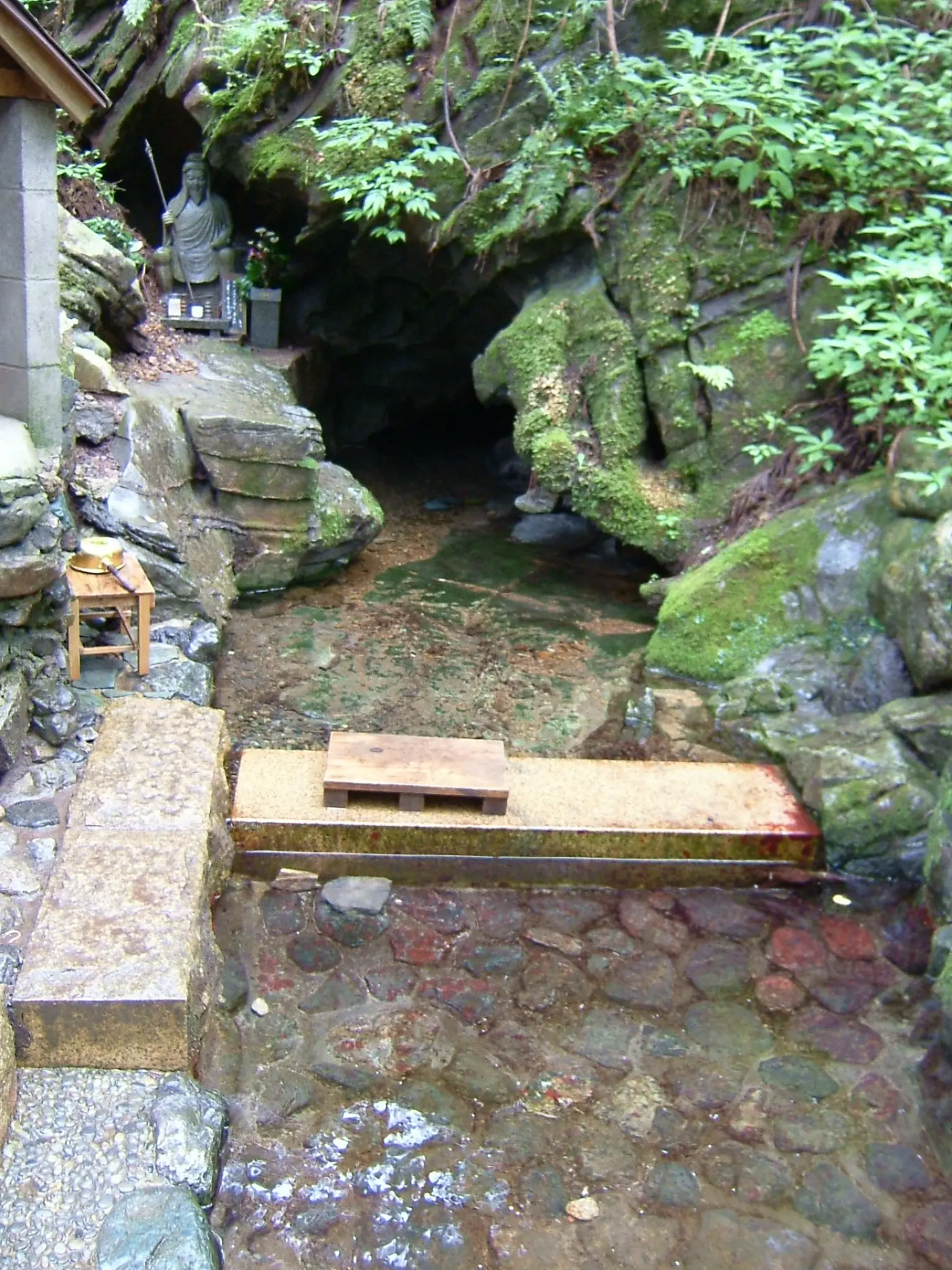 「洞川温泉」から大峯山登山口への途中、石灰岩層から湧くミネラル分豊富な水温10.4度の清冽な水で、水が湧く洞窟から、小石が転がるような音がすることから名づけられた。近くにある「泉の森」、「神泉洞」とともに、「洞川湧水群」として名水百選に指定されている。