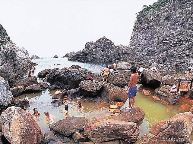 その印象が強くて温泉のイメージはまったくなかったのですが、海岸の岩場に湧く野趣たっぷりのロケーションと、鉄分を含む赤褐色の湯のコラボが印象的すぎて、以後、全国的に知名度が上がり、温泉好きにはすっかり有名になりました。