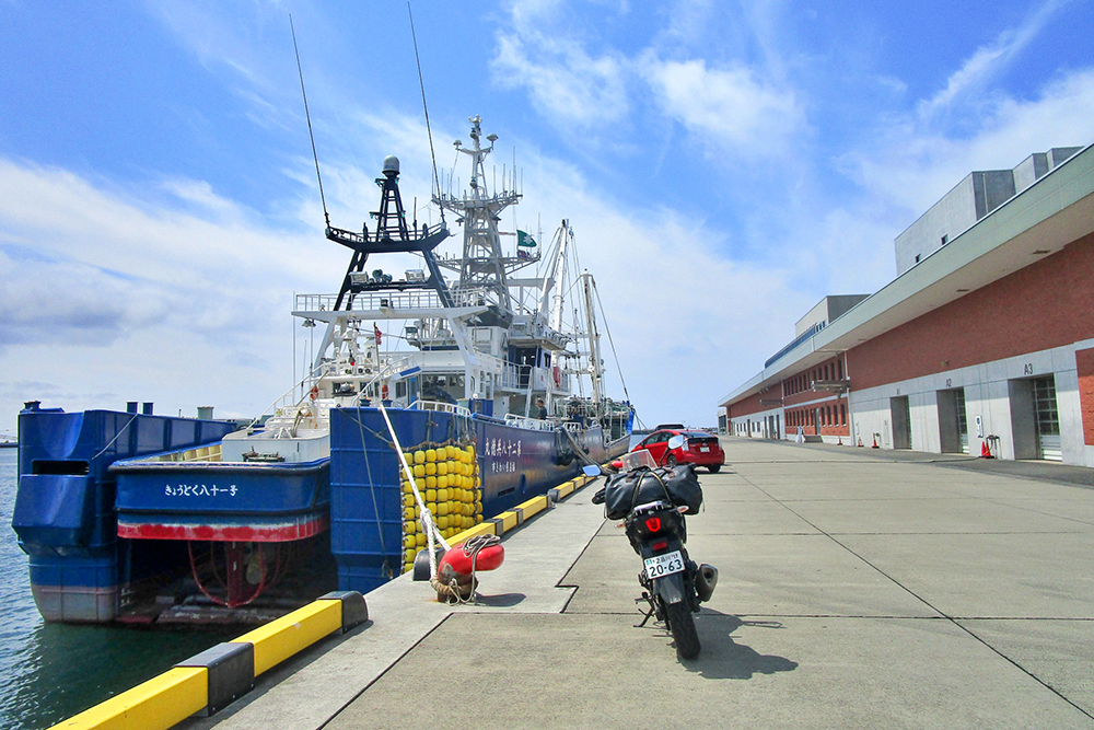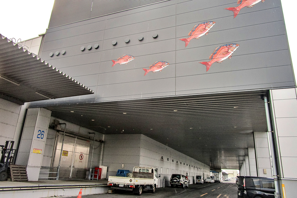 小名浜漁港の魚市場。大型漁船が接岸している
