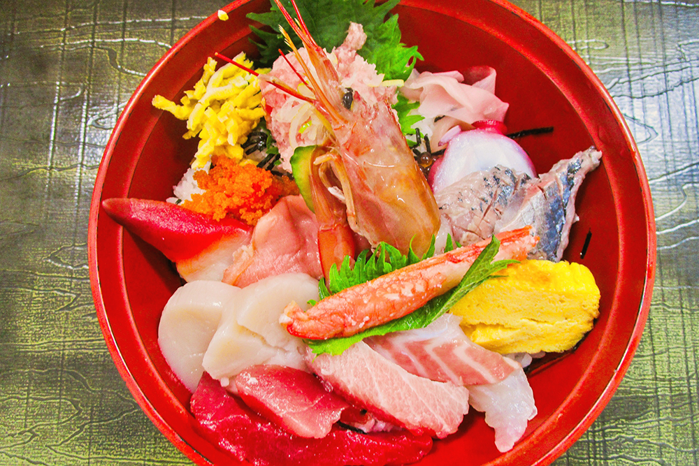ここでは「海鮮丼」を食べたが、石巻漁港ならではの豪華版。マグロ、ブリ、イカ、タコ、エビ、カニ、ホタテ、ホッキ貝と盛りだくさん。「特上海鮮丼」もある。