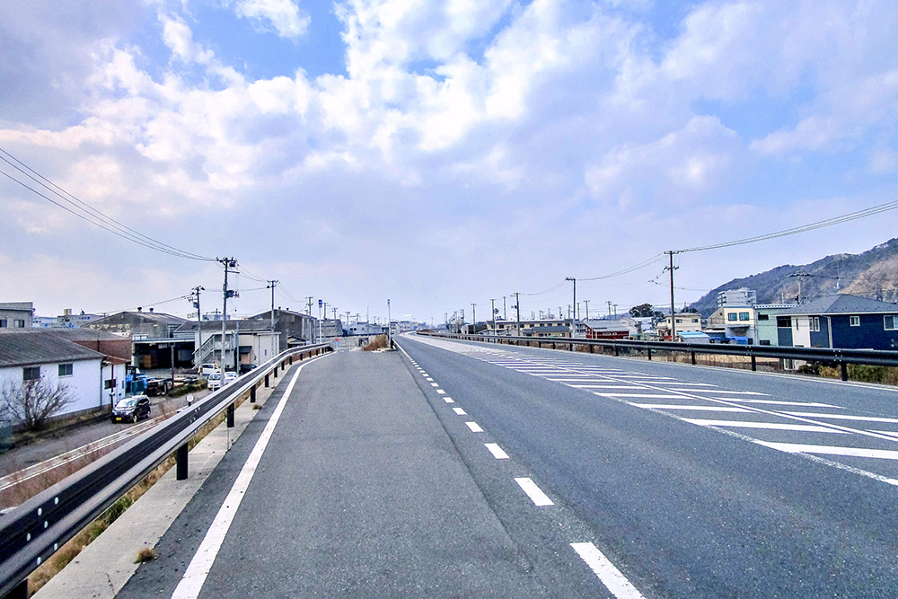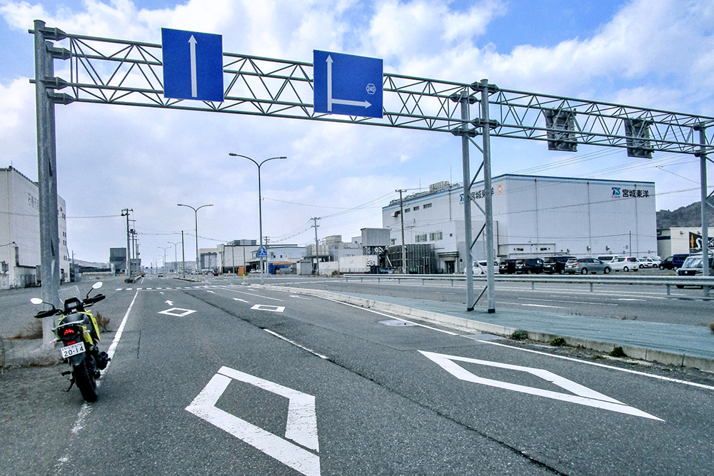 石巻魚市場前に通じる4車線道路