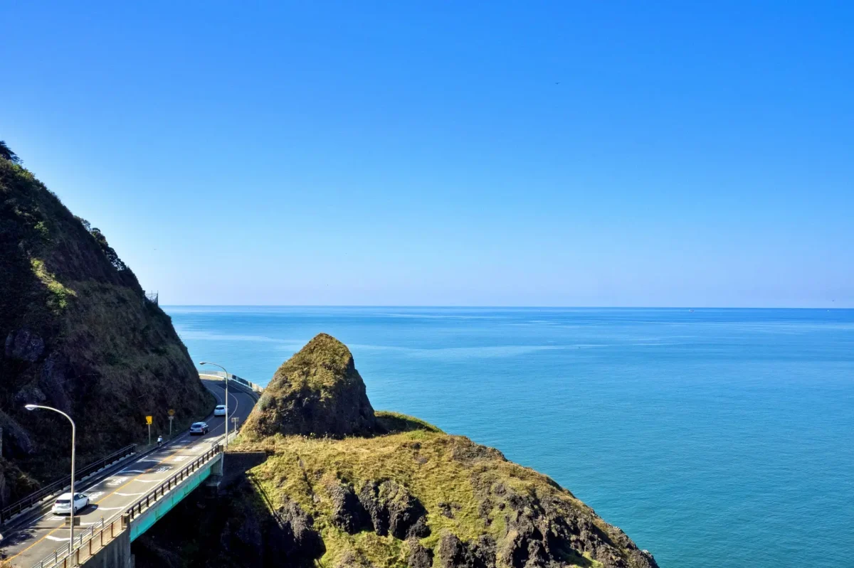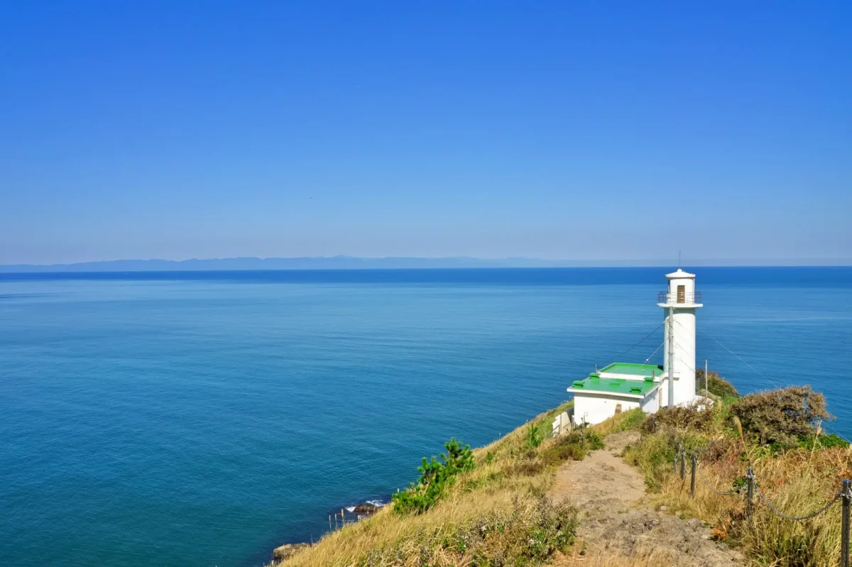 「信濃川」の分水路、「大河津分水路」を渡り、弥彦山の山麓から角田岬までは、かつての有料道路で、「越後七浦シーサイドライン」とも呼ばれます。「角田岬」には「角田岬灯台」が建っていて、ここからの眺めは絶景です。