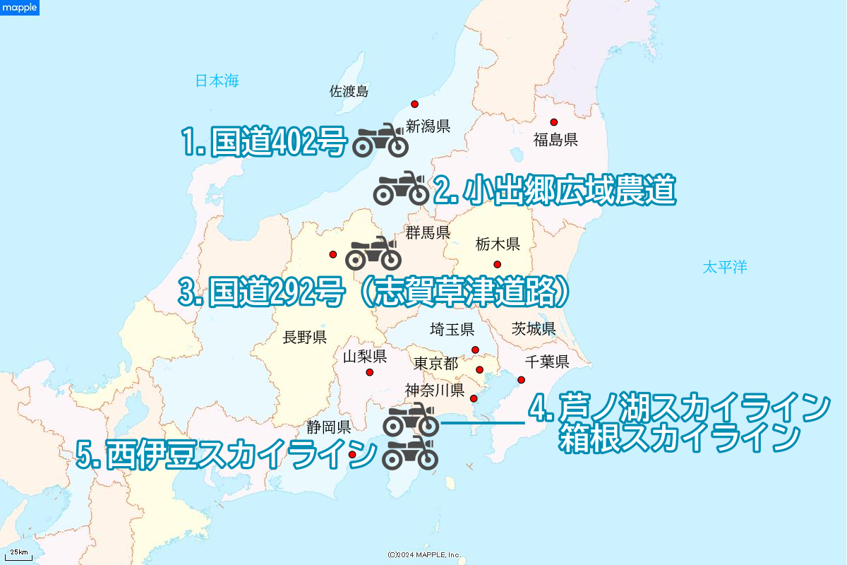今回は、そんな場所に出会えるおすすめの「絶景道」を、『ツーリングマップル関東甲信越』掲載エリアから、5ルート紹介します。早速見ていきましょう!