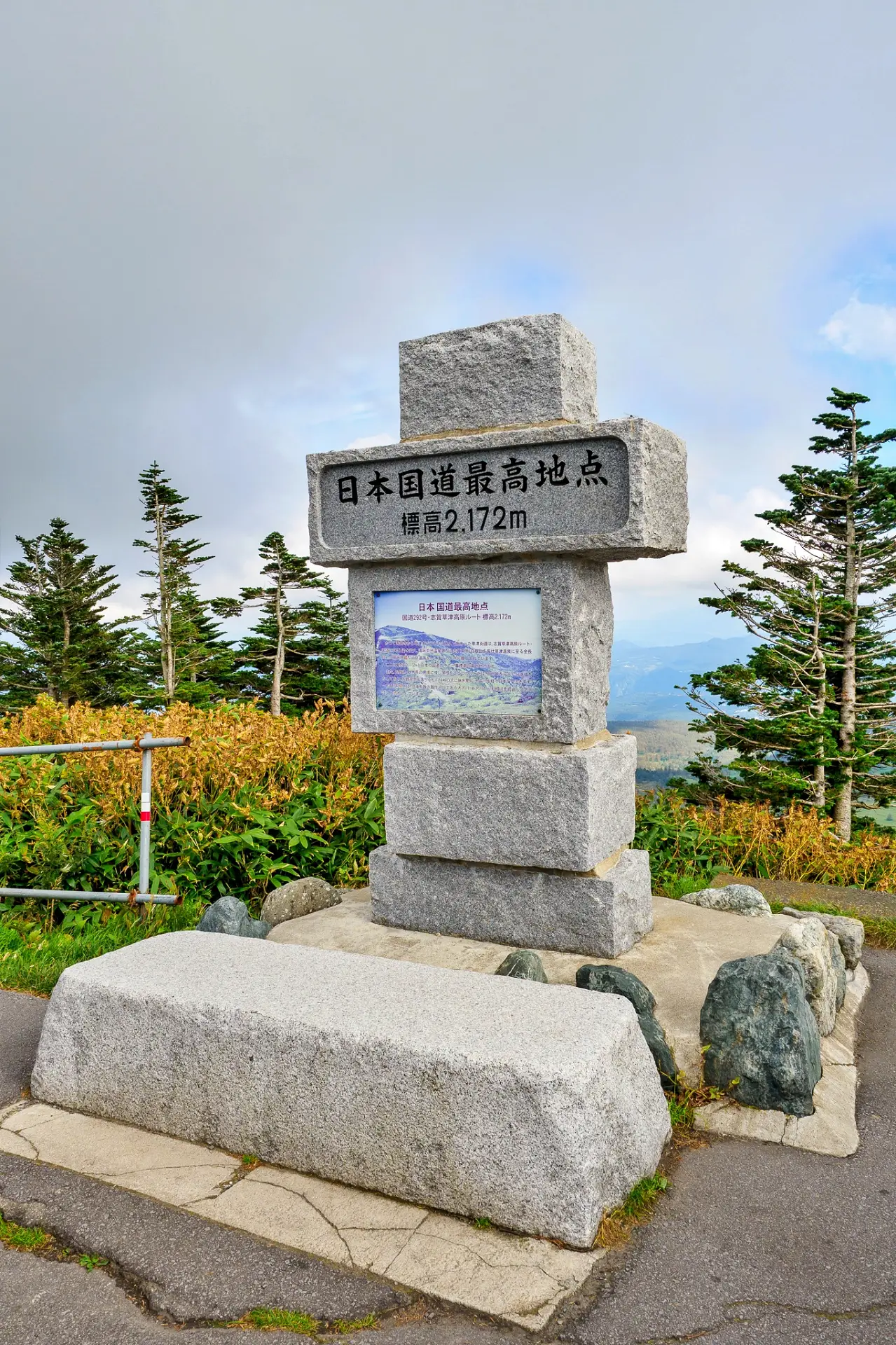 「日本国道最高地点」の碑。休日は記念撮影を撮る人達で行列が出来る