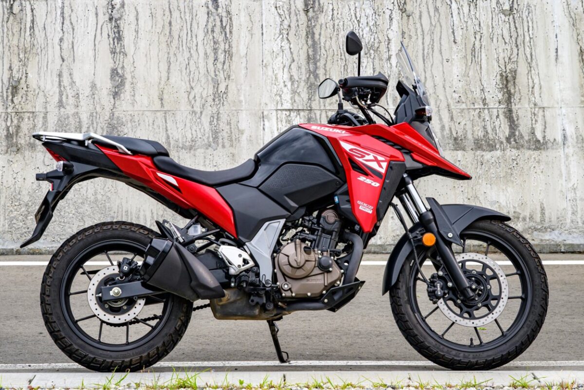そしてこちらのVストローム250 SXも、ワタクシ乗らせていただきました。SSTR2025で、カソリさんと、ポンセ中村氏と、3人でSX3台に乗って、あちこち走りまくりましたね。とにかくヒラヒラ走るし曲がるし高速でも全然ブレないしと、驚きのマシンでした。