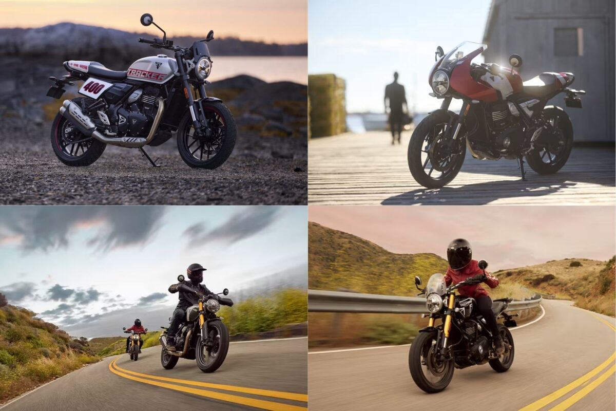 上段左が「TRACKER 400」、上段右が「THRUXTON 400」、下段左が「SCRAMBLER 400」、そして下段右が「SPEED 400」