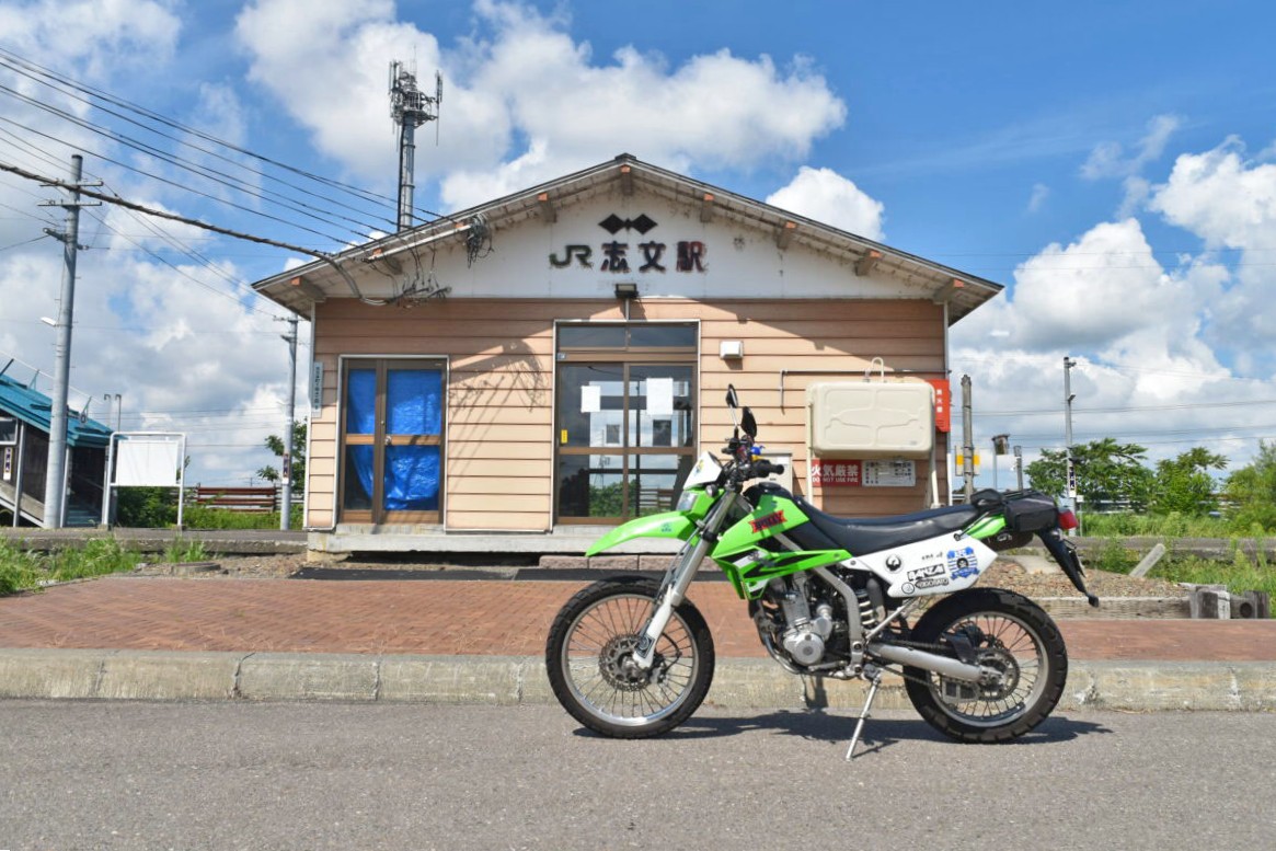 ツーリングの出発点となる志文駅。現在の駅舎は簡素な造りに建て替えられていますが、跨線橋だけは当時のまま残されています。上下線のホームが大きく離れているのは、かつてここに広がっていた広大な操車場の名残です。構内には草が伸び放題で、往時の賑わいを感じさせるものはほとんどありません。それでも線路脇に立つと、いつかのように石炭を積んだ貨車がやってきそうな気がしてなりません。