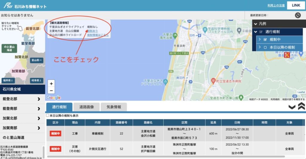 事前に「石川みち情報ネット」(https://douro.pref.ishikawa.lg.jp/)の
